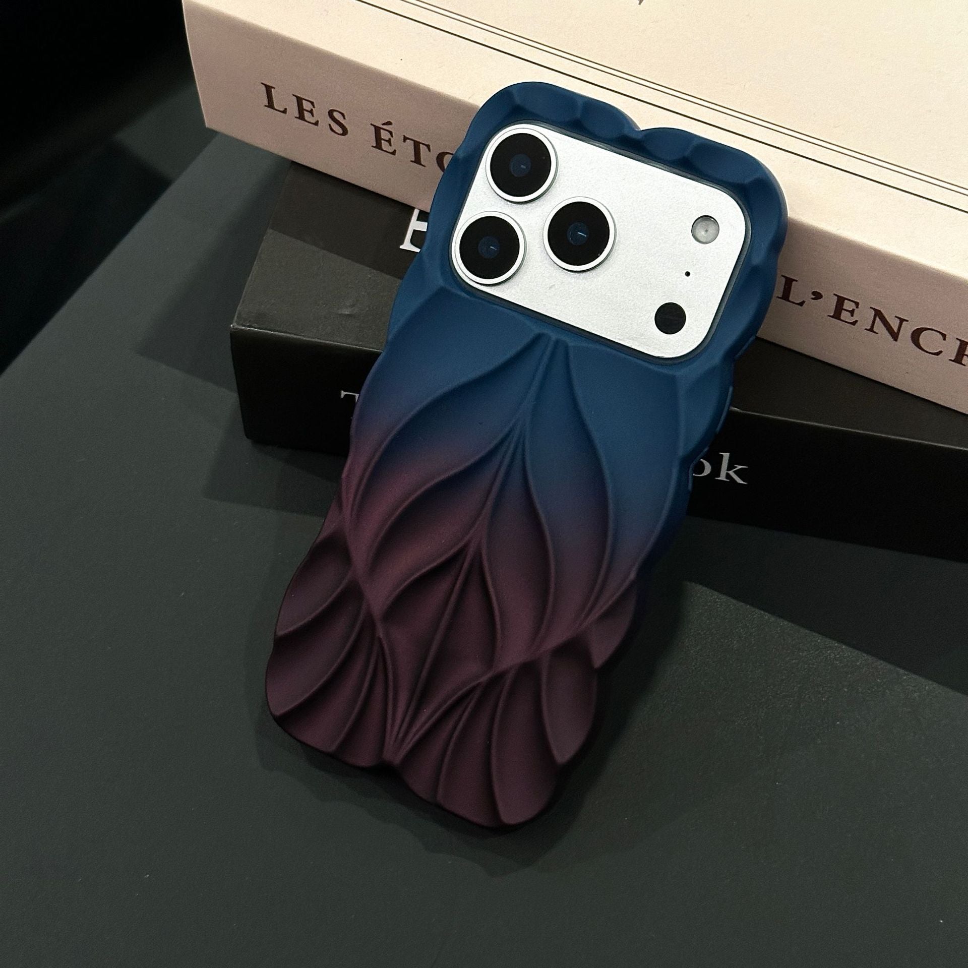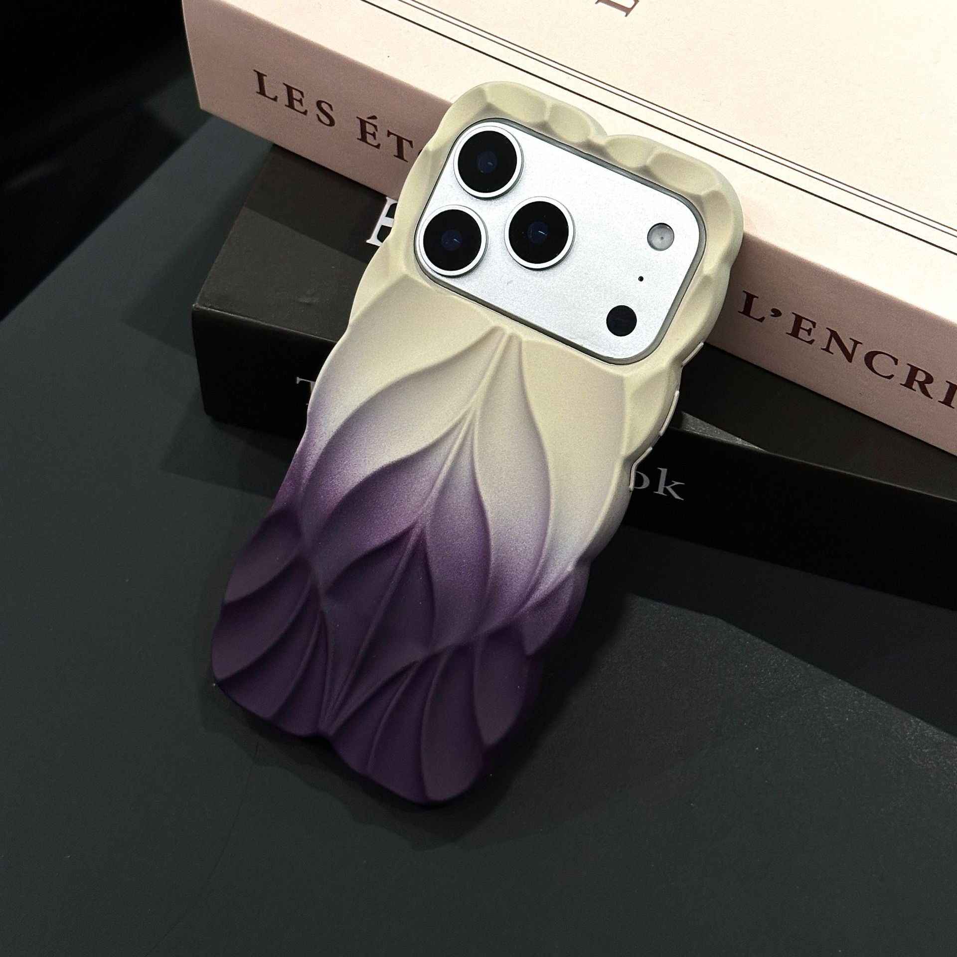 Luxury Electroplated Gradient Leaf Case with Striped Texture for iPhone 17 Pro Max